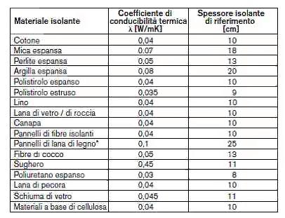 La conducibilità termica esprime la quantità di calore che al secondo attraversa 1 m di spessore di un certo materiale di sup. 1 m2 quando la differenza di temperatura delle due facce è di un 1°C (1 Kelvin). È il parametro che identifica il comportamento dei vari materiali nella trasmissione del calore (viene espressa in W/m•K). Materiali termicamente isolanti hanno una bassa conducibilità termica. La conducibilità termica dipende :