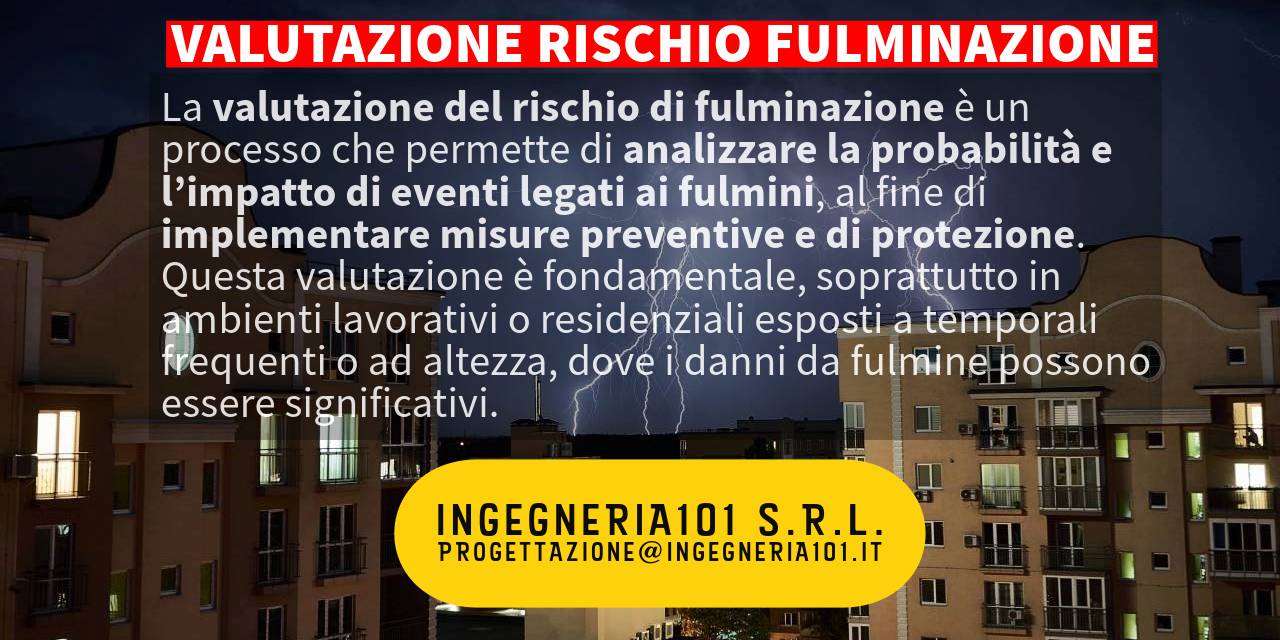 Lo studio Ingegneria101 S.r.l. effettua la redazione della Valutazione del Rischio di Fulminazione, redatta in base alla norma CEI EN 62305. L’obbligo di valutazione del rischio di fulminazione è sancito dal Decreto Legislativo 81/2008, che impone ai datori di lavoro di valutare e gestire i rischi derivanti da fulminazione diretta e indiretta negli ambienti di lavoro. L’obbligo si estende anche ai condomini nel caso in cui il condominio stesso abbia un lavoratore dipendente (ad esempio portiere). L’amministratore di condominio, in quanto datore di lavoro, è tenuto a effettuare tale valutazione.