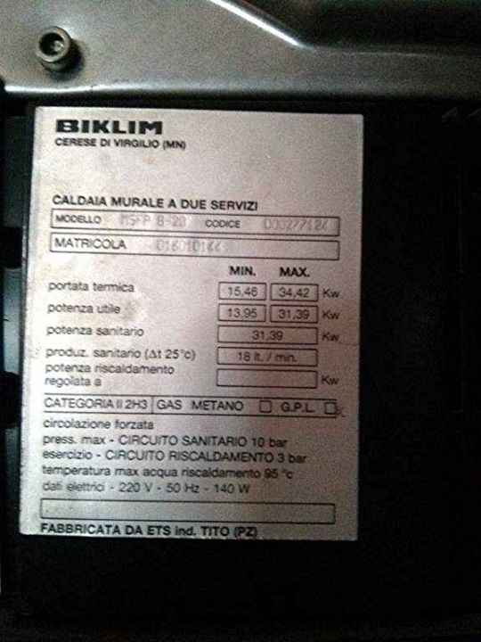 Targhetta caldaia - Biklim modello Minor BL 24