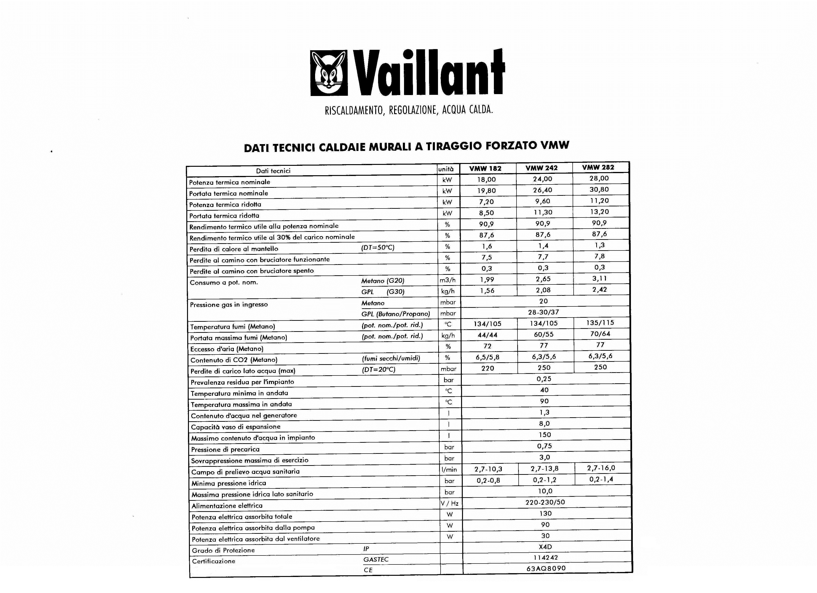 Schede tecniche caldaie Vaillant