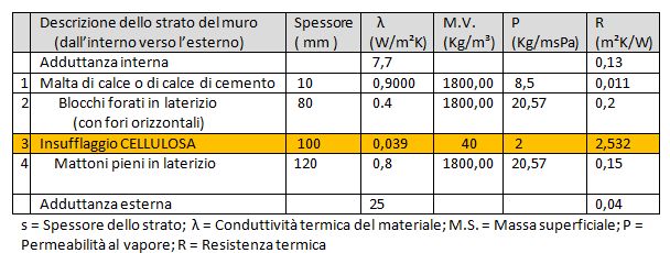 TRASMITTANZA MURO DOPO INSUFFLAGGIO CELLULOSA IN FIOCCHI IN INTERCAPEDINE DI 10 CM